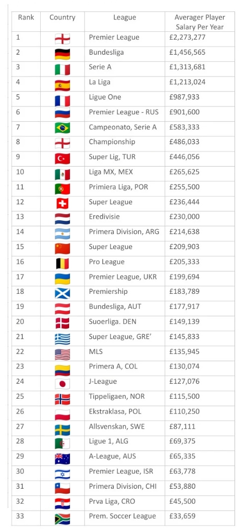 Agents normally earn around 10% commission based on the salary of each player/s they represent. Here are the average player salaries worldwide: